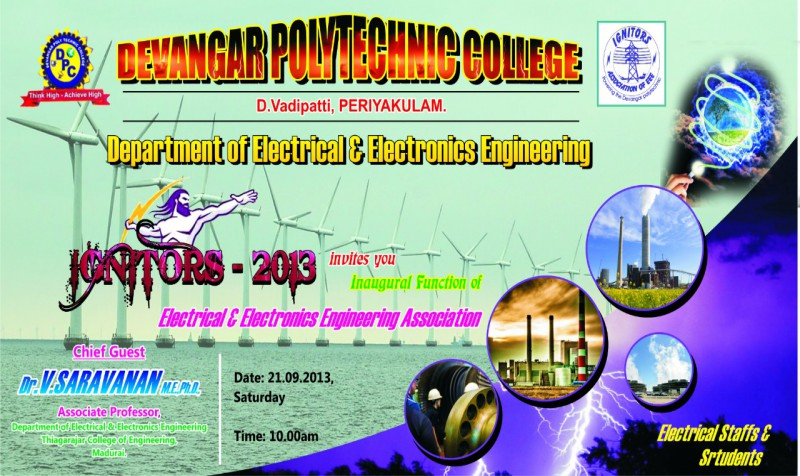 "I am happy to share that as a team of qualified & dedicated faculties,we from Devangar Polytechnic College are committed to impart quality and value based education,leading to employment and meeting the current global requirements. All our laboratories and infrastructures meet the AICTE and DOTE norms."